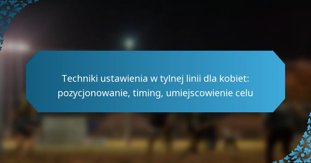 Techniki ustawienia w tylnej linii dla kobiet: pozycjonowanie, timing, umiejscowienie celu